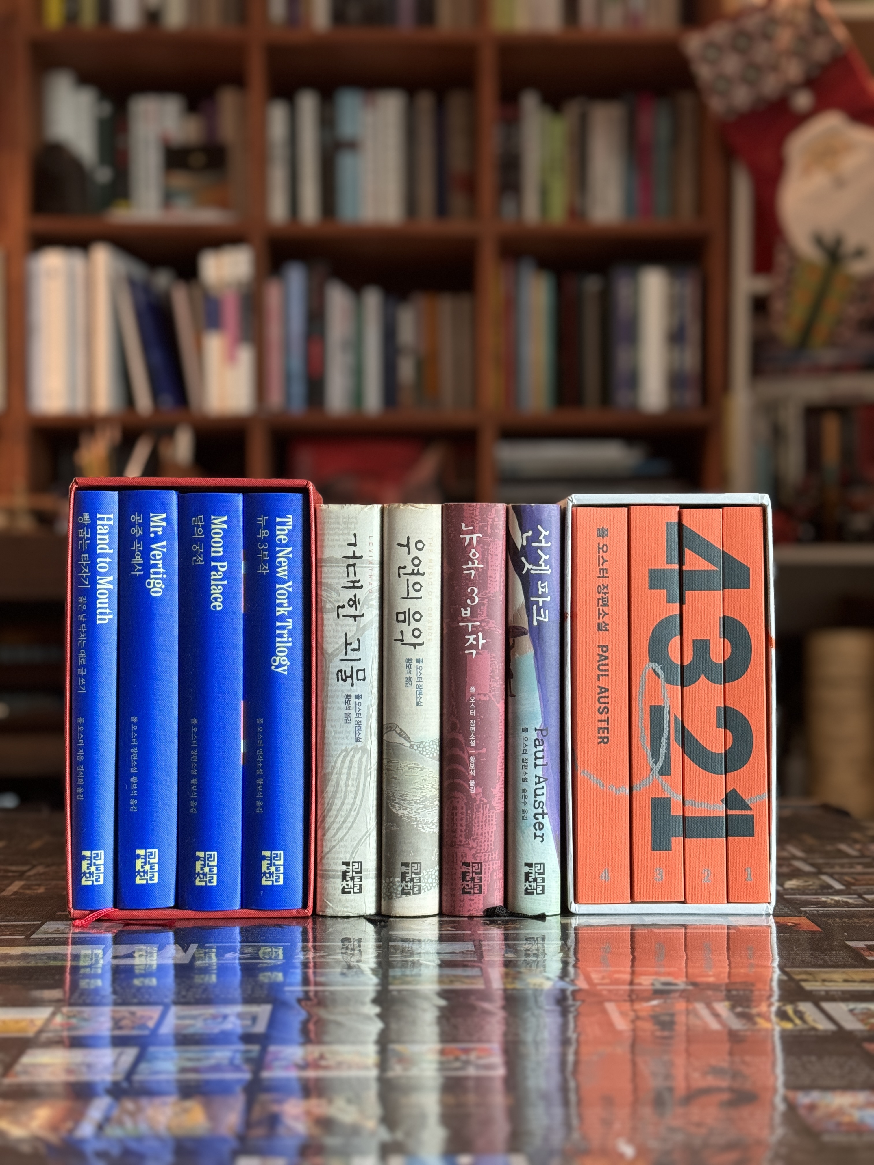작년에 나왔던 #폴오스터컬렉션박스세트 같은 선집이 또 나온줄 알았다. 장편신간이란 소식에 소개글 한줄 읽지 않고 주문했다. 폴오스터 얼마만에 나오는 장편인가. 반가운 마음 뿐이였고, 양장 2권세트와 무선 4권세트(한정판)으로 발매된다길래 일단은 한정판으로 질렀다. 받아든 책이 이쁘다. 역시 책 잘만드는 '열린책들'이다. 깔끔하게 만들어진 책이 손에 착 감긴다. 4권 대략 1600페이지, 한참을 달려야 했다. ☺️