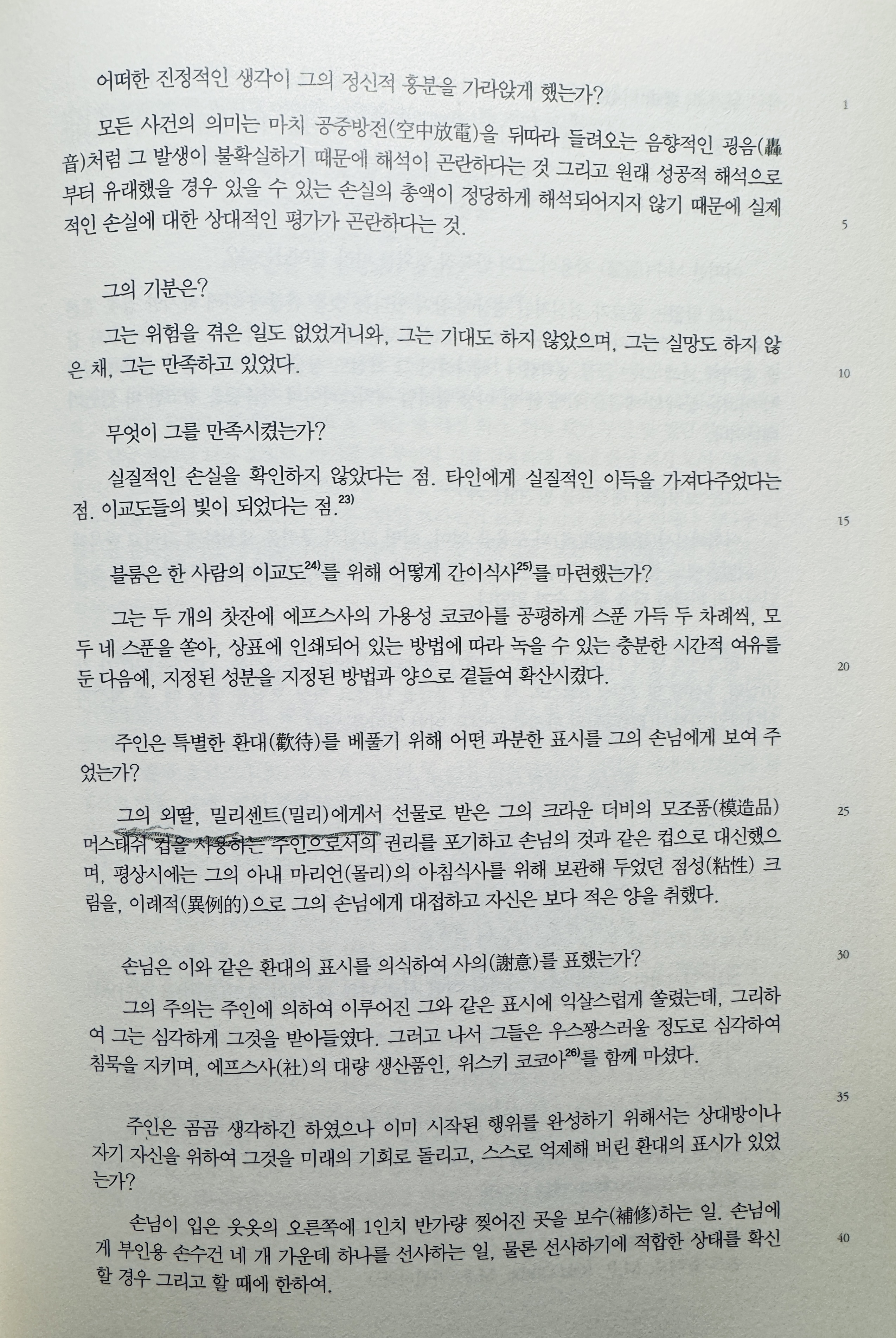 p56 “ 조용히 그는 읽어 나갔다. 스스로를 힘을 주면서, 첫째 단을 그리고 굴복하면서 그러나 버티면서, 둘째 단을 읽기 시작했다. “