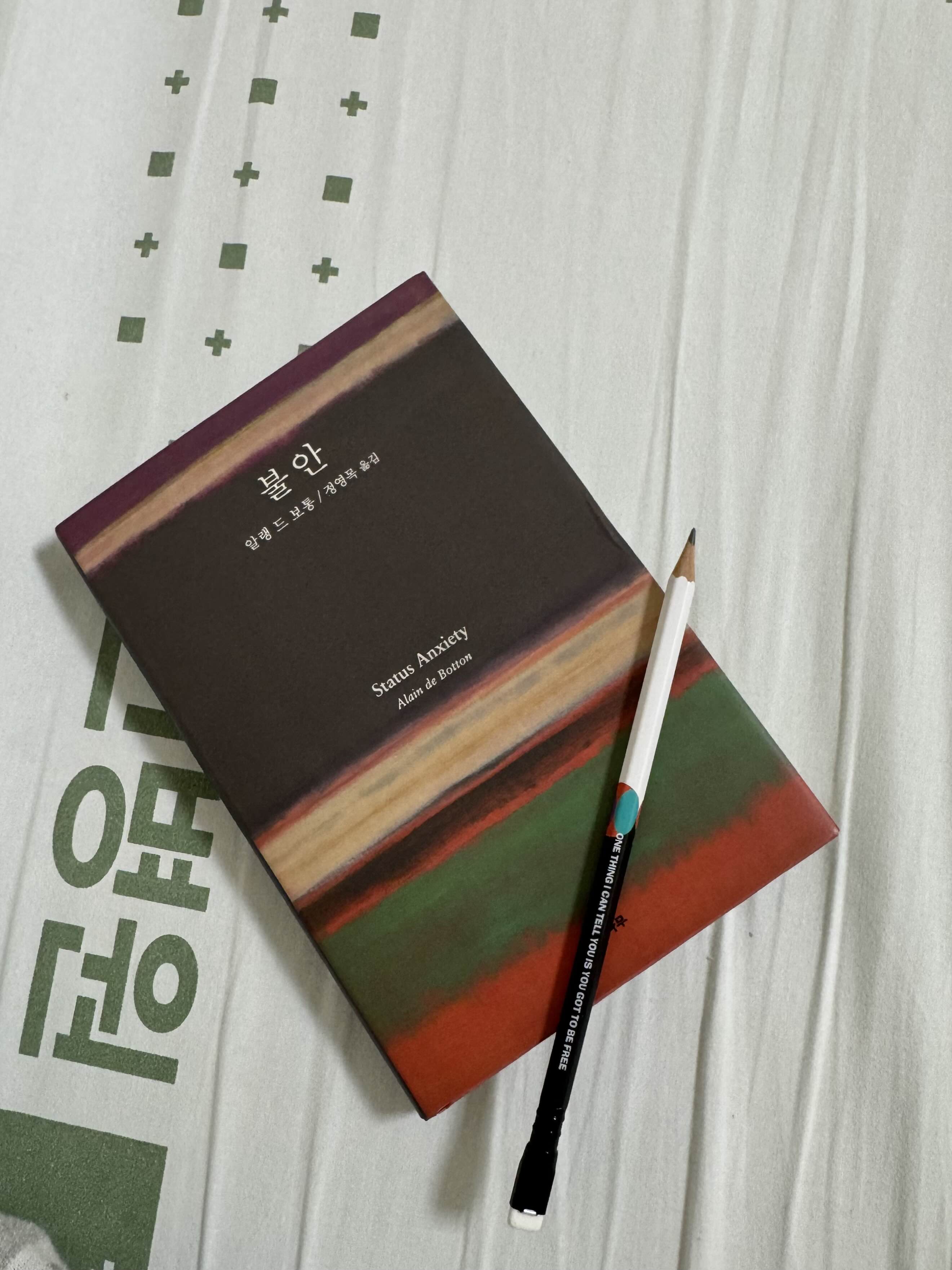 10년전 즈음, 이 책이 인기 중일 때 읽지 않았던 이유를 잊었다. 지난번 쇼핑에 개정판 표지가 이뻐 다른 책들과 같이 주문해 놓았었다. 급하게 병원에 입원을 하며 떠오른 책이 이 책이다. 역시나 제목 때문. ‘불안’한 마음이 들 수밖에 없는 상황에서 만약 책을 읽을 수 있는 상황이 되면 이 책을 읽고 일종의 힐링을 받을 수 있지 않을까 기대했다.