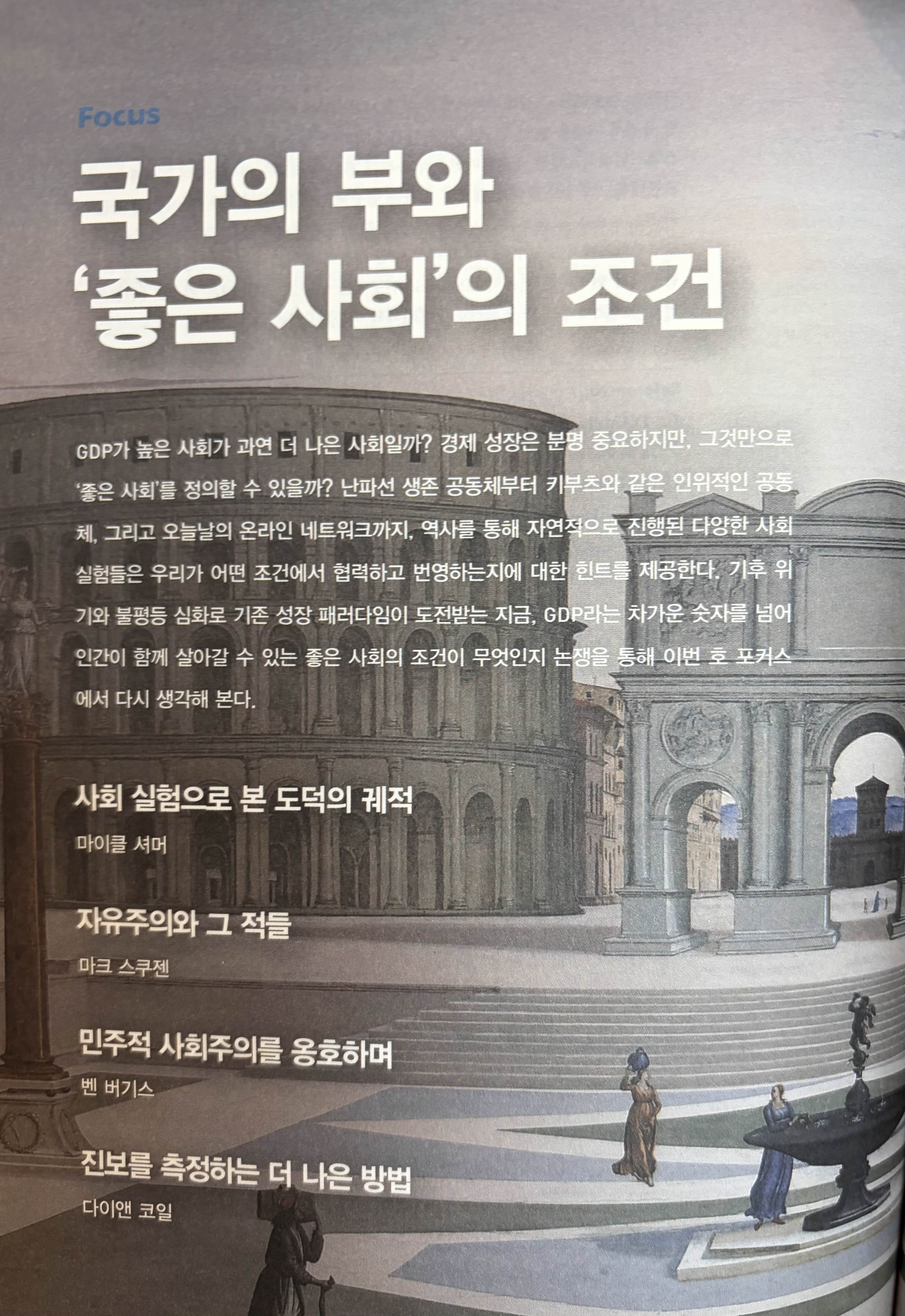 두번째 특집은 국가의 부와 ‘좋은 사회’의 조건이다. 창립자인 마이클셔머도 오랜만에 한 챕터를 맡아서 자신의 주장을 펼친다. 진보나 보수나 개인보다 집단을 앞세우기 때문에 만들어지는 부작용이 많으니 ‘고전적 자유주의’로 돌아가야 한다 주장한다. 이어 거대정부에 대한 거부감이 가득한 자유주의 경제학자의 글도 진지하게 자신의 주장을 펼치며, 이어 반대입장인 사회민주주의 옹호입장의 학자의 글이 이어진다. ‘보건’이 국민의 권린가 아닌 미국의 영리 중심 체계가 정답일까 하는 의문과 함께, 사회민주주의를 넘어서는 사회주의는 왜 안되냐는 질문을 던진다.