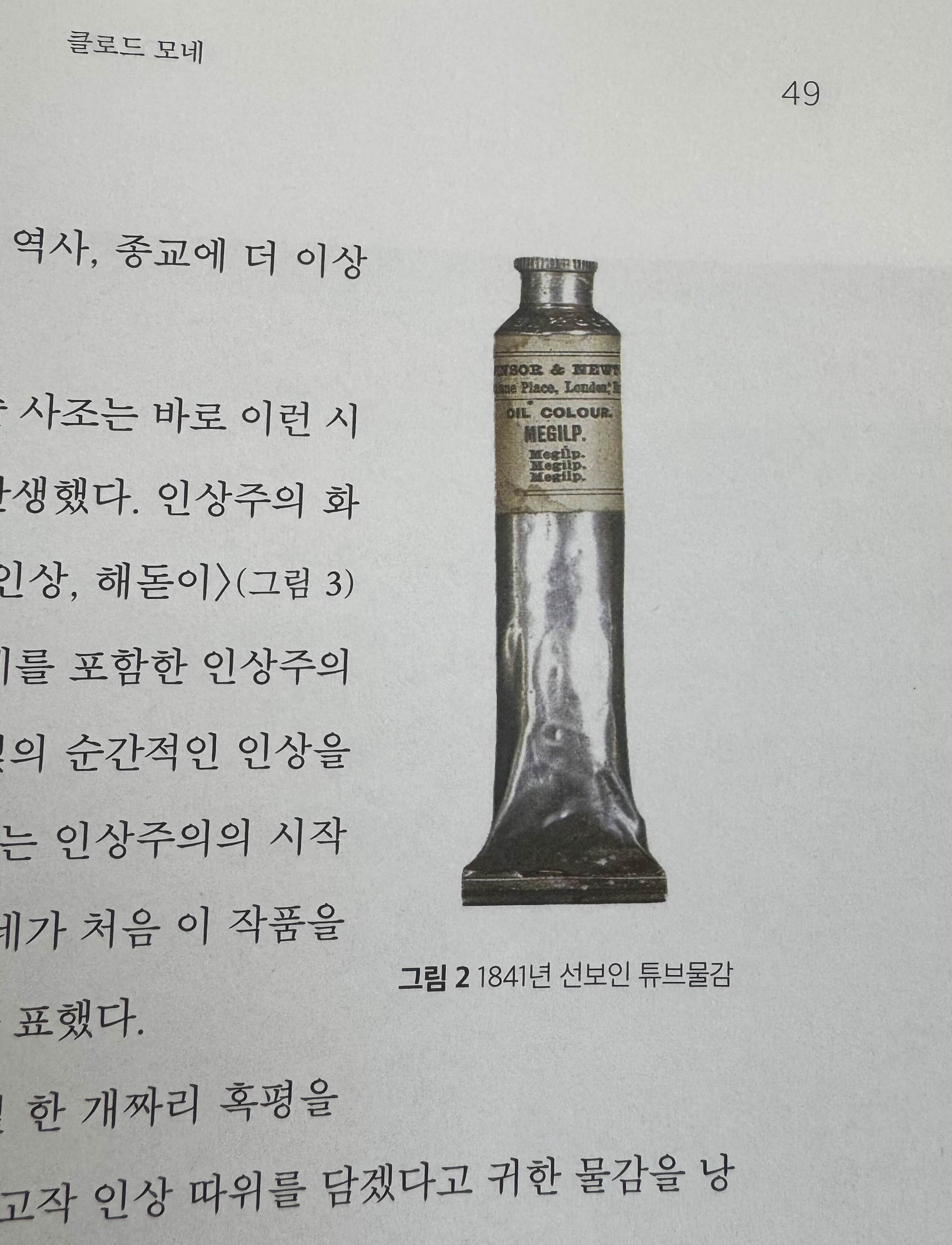p49 “ (인상주의) 스케치 없이 바로 물감을 이용해 그림을 그린 건 순간의 감동, 찰나의 영감을 캔버스에 담기 위한 노력의 흔적이었다. “